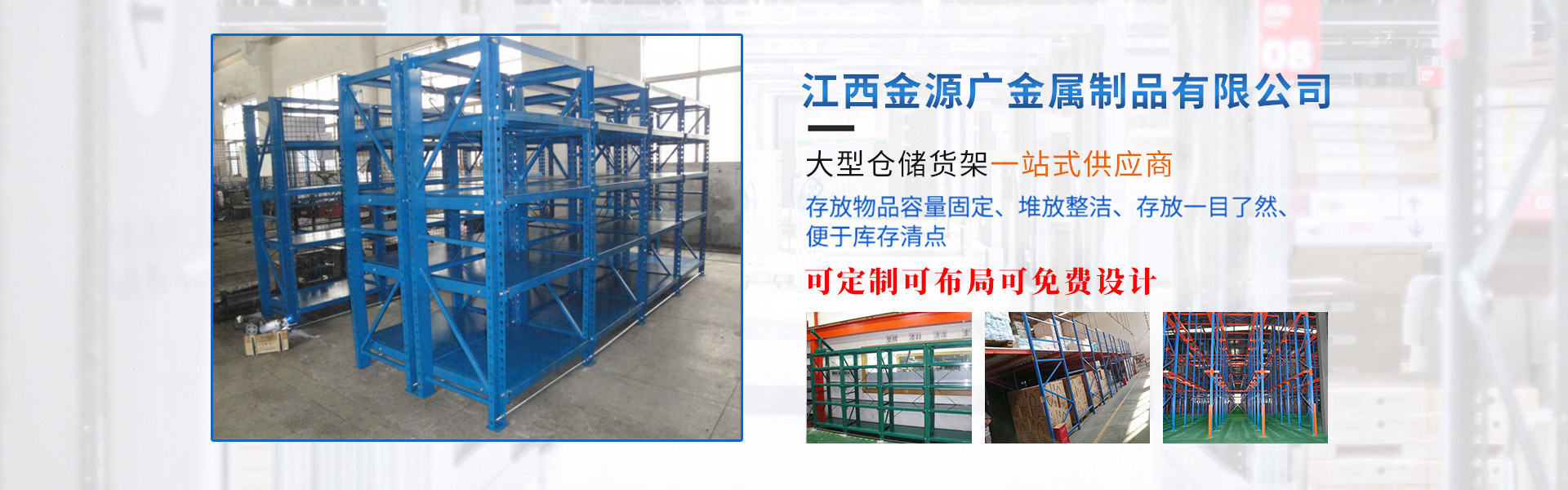 江西金源廣金屬制品有限公司致力于物流系統集成裝備和物流信息技術的研發、設計、制造、安裝調試和銷售的專業公司,公司員工從事物流行業20多年,目前江西、江蘇、廣州等都有分公司。公司擁有數名多年物流設備從業經驗的技術、設計及銷售人才。公司提供倉儲物流設備及相關服務,擁有專業設計團隊、單獨研發部門、品質部門、售后部門可以根據客戶的需求進行“量身定做”,及時而準確地為客戶提供完整的倉儲方案。